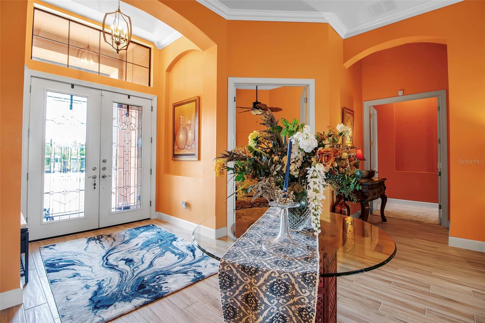 This beautiful single-story home features 3 bedrooms, 3.5 baths, an office, and a bonus room, and pool overlooking the lake, and offering luxurious living at its finest. The bright, open floor plan is enhanced by soaring ceilings, creating an easy flow from room to room. The sellers have thoughtfully upgraded this exceptional space with trayed ceilings, crown molding, plantation shutters, custom drapery, and upgraded ceiling fans. A stunning stone wall with an electric fireplace and warm color palette creates an inviting atmosphere. Outside, experience the best of Florida living with serene lake views and panoramic screens for uninterrupted enjoyment of the natural surroundings. Multiple areas invite relaxation and entertainment, including a lanai with an outdoor kitchen, paver brick decking, and pool. Enjoy a maintenance-free lifestyle with groundskeeping provided by the association. For those seeking to complement their lifestyle, the clubhouse offers a fitness center, yoga and massage rooms, locker rooms, and a game room, as well as tennis, pickleball, and bocce ball courts, and even two dog parks. Legacy Estates is a gated community with resort-style amenities, including the Bahama Bar Restaurant next to a beach-entry pool, heated spa, and a kid-friendly splash and play area. The location provides easy access to the Legacy Trail and nature trails for walking and bicycling for the outdoor enthusiast. Conveniently located near A-rated schools, shopping and dining options abound, and a short drive will take you to some of the most beautiful beaches in the world!